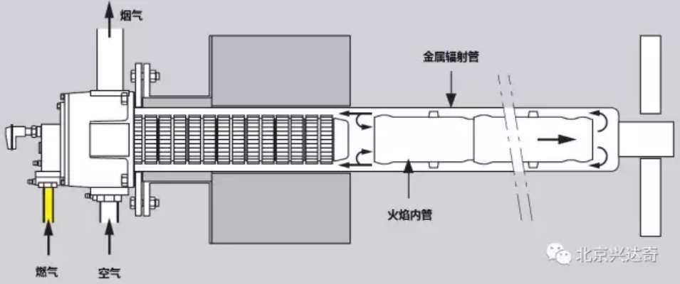 三、使用I型(一字型)辐射管要安装陶瓷火焰内管,让火焰形成循环通道。