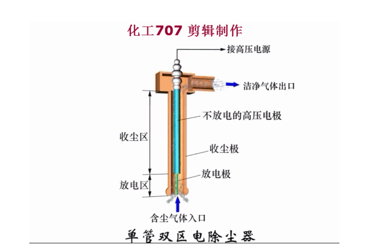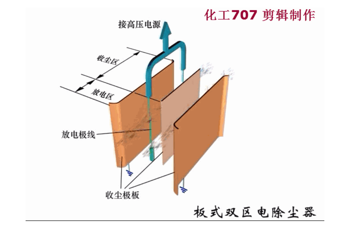 这种电除尘器的除尘系统和电晕系统分别装在两个不同的区域内。前区内安装电晕极和阳极板,粉尘在此区域内进行荷电,这个区为电离区,后区内安装收尘极和阴极板,粉尘在此区域内被捕集,称此区为收尘区,由于电离区和收尘区分开,称此为双区除尘器。